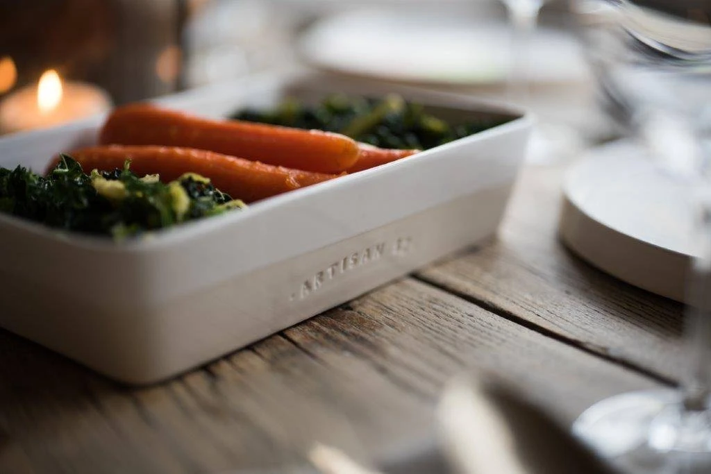 Perfect for serving or roasting a large cut of meat or roasted vegetables, the Artisan Street Large Rectangular Roaster is a true kitchenware essential. The large stoneware rectangular roaster has been cleverly designed with straight sides to keep the contents contained, making it an excellent piece of tableware for serving roast beef or saucy dishes such as scalloped potatoes. The large rectangular roaster is perfect for informal meals and large dinner parties alike as it can be neatly placed in the middle of any table.