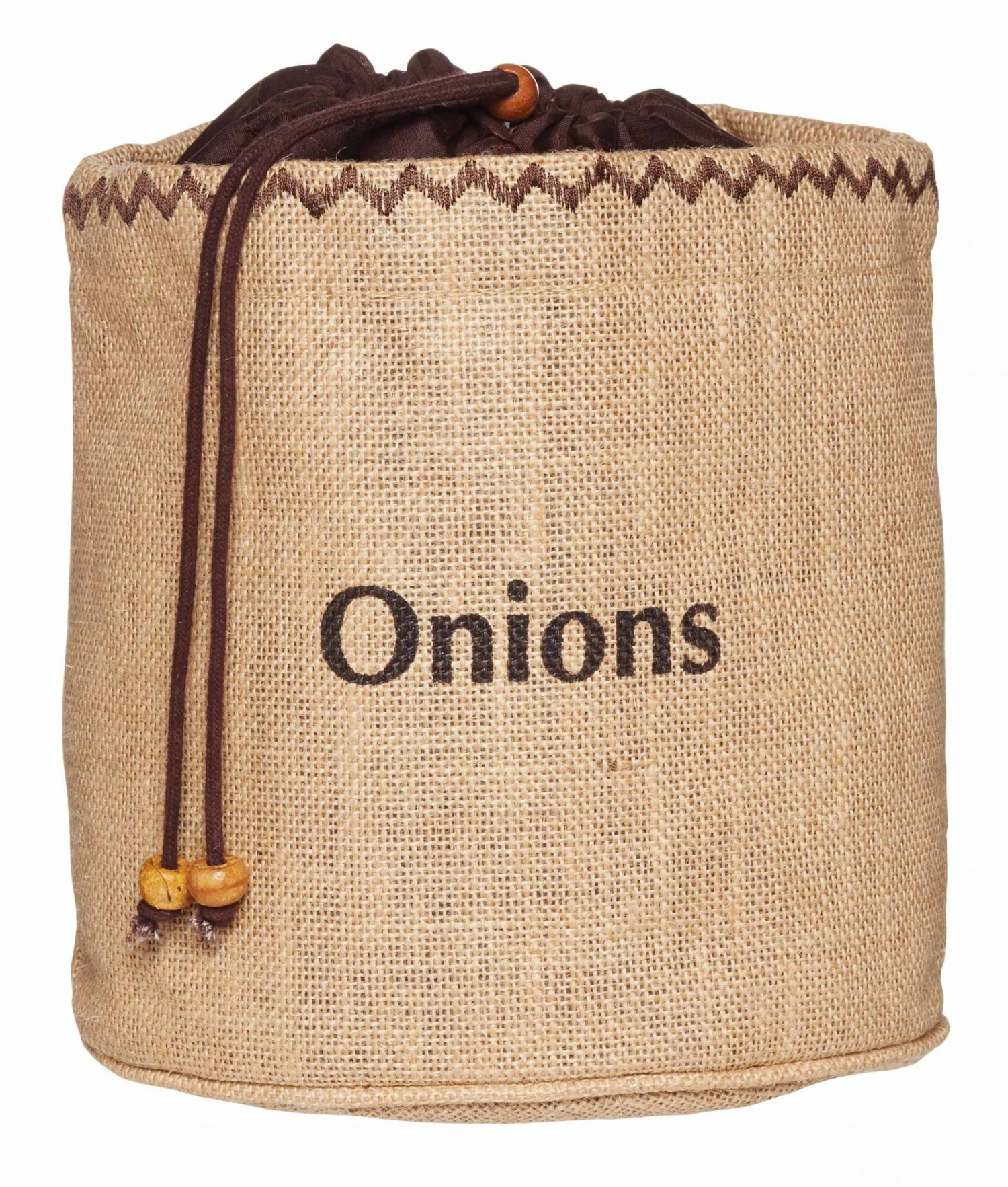 This Natural Elements hesian preserving bag is perfect for storing onions, designed with a blackout breathable liner to remove light and to prevent sprouting.