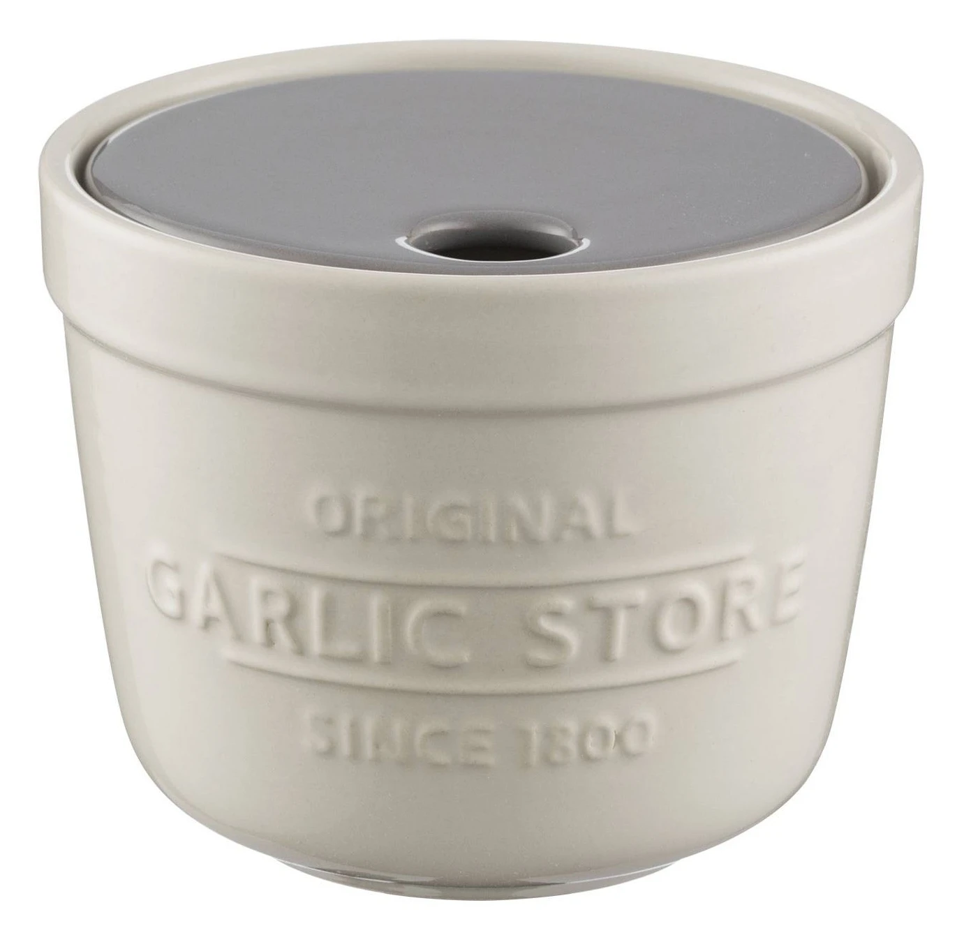This garlic store has air vents for keeping garlic fresher for longer and the lid incorporates a grater for garlic or ginger.