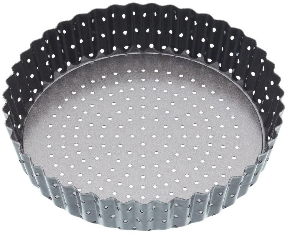Make delicious quiches, flans and tarts with this non-stick, loose base, fluted round quiche tin. The perforated holes along the base and sides ensure the air circulates freely during the cooking process and you can create fruit flans and savoury quiches with the perfect golden-brown, crisp crust. Let’s banish the soggy bottom forever! Various sizes available.