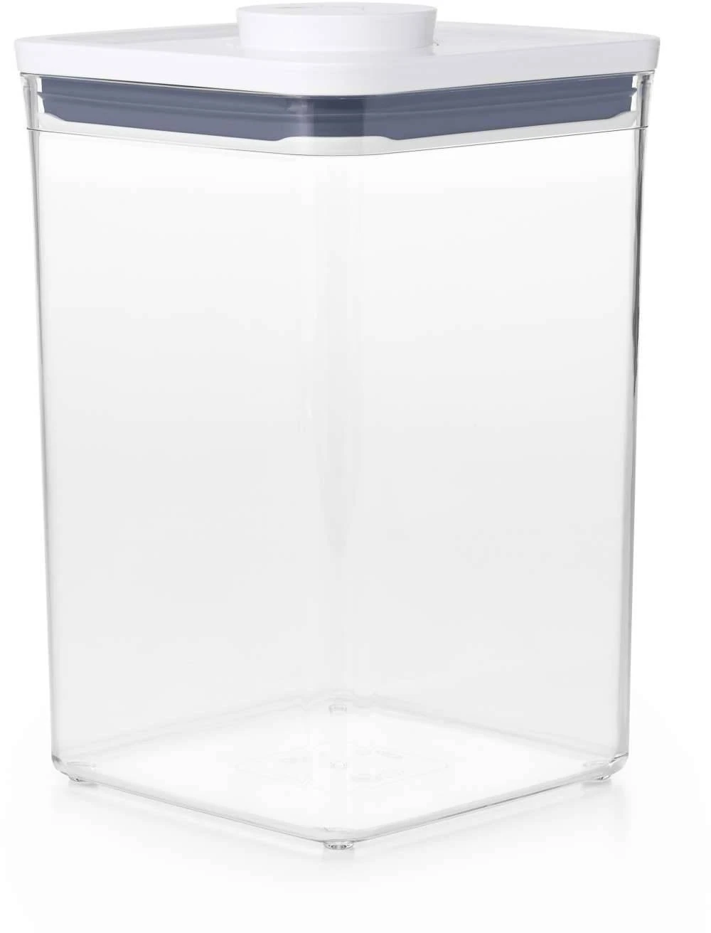 Different sizes are designed to fit different pantry staples like flour, pasta, and sugar, and opening the Container is as easy as pushing a button. The button even pops up to serve as a handle for the lid!
