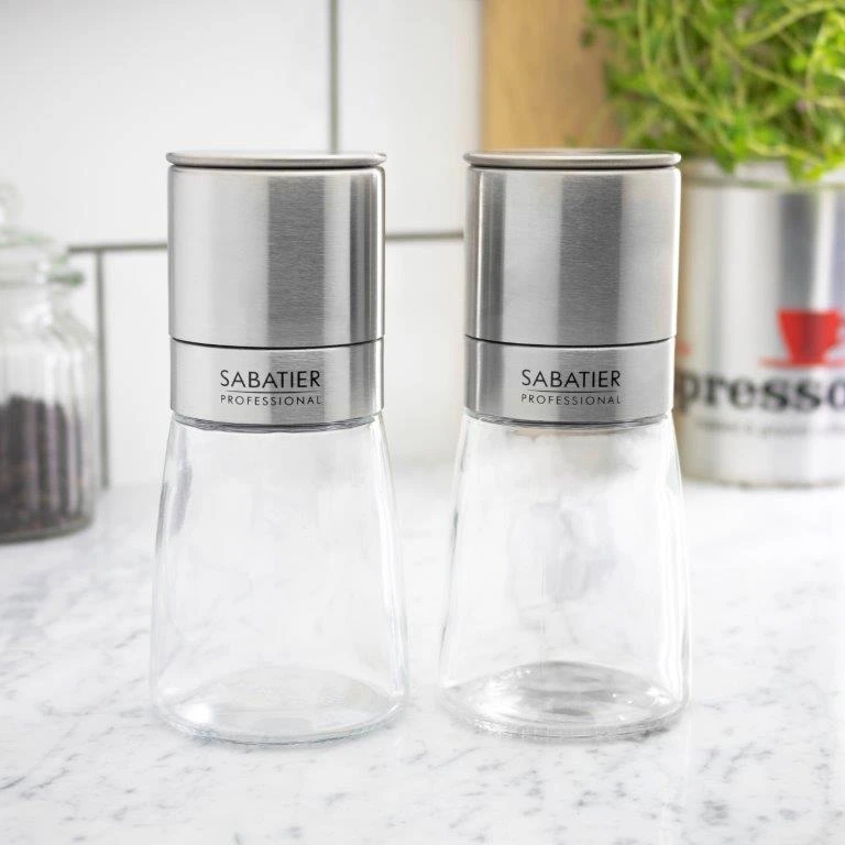 - Marseille 2 Piece Salt, Pepper Mill Set Glass / Stainless Steel.Â