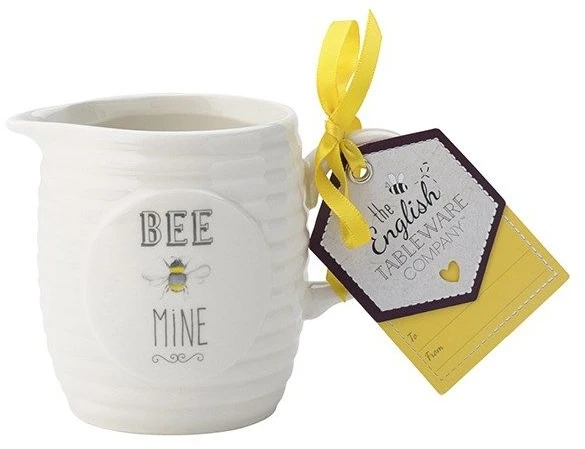 This practical and quirky Creamer with an embossed, striped beehive shape and honey bee decoration would add a fun element to your kitchen decor. The honeycomb lid features an embossed bright yellow geometric design and the front is decorated with the slogan ‘Bee Mine’.